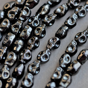 Бусина "Череп", стекло, цвет черный гематит, 10x8x6-7 мм