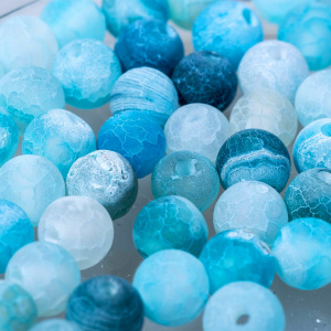 Бусина агат 6, морозная с трещинками, цвет голубой, 6 мм (стренд 18 шт.)