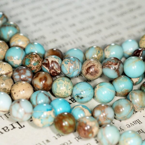 Бусина варисцит 8, цвет бирюзовый светлый, колорир., 8 мм (стренд 10 шт.)