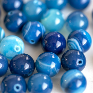Бусина агат 10, цвет синий полосатый, колорир., 10 мм (стренд 10 шт.)