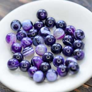 Бусина агат 10, цвет фиолетовый полосатый, колорир., 10 мм (стренд 10 шт.)