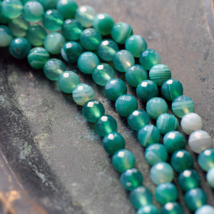 Бусина агат 10, цвет салатовый полосатый, колорир., 10 мм (стренд 10 шт.)