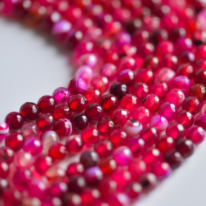 Бусина агат 6, граненая, цвет малиновый, колорир., 6 мм (стренд 18 шт.)