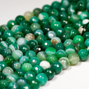 Бусина агат 6, граненая, цвет салатовый/зеленый, колорир., 6 мм (стренд 18 шт.)