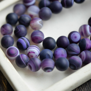 Бусина агат 10, цвет фиолетовый полосатый, матовый, колорир., 10 мм (стренд 10 шт.)