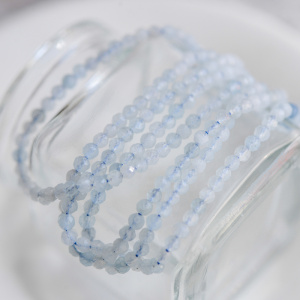 Бусина аквамарин, граненая, цвет голубой, 3 мм, стренд 39 см