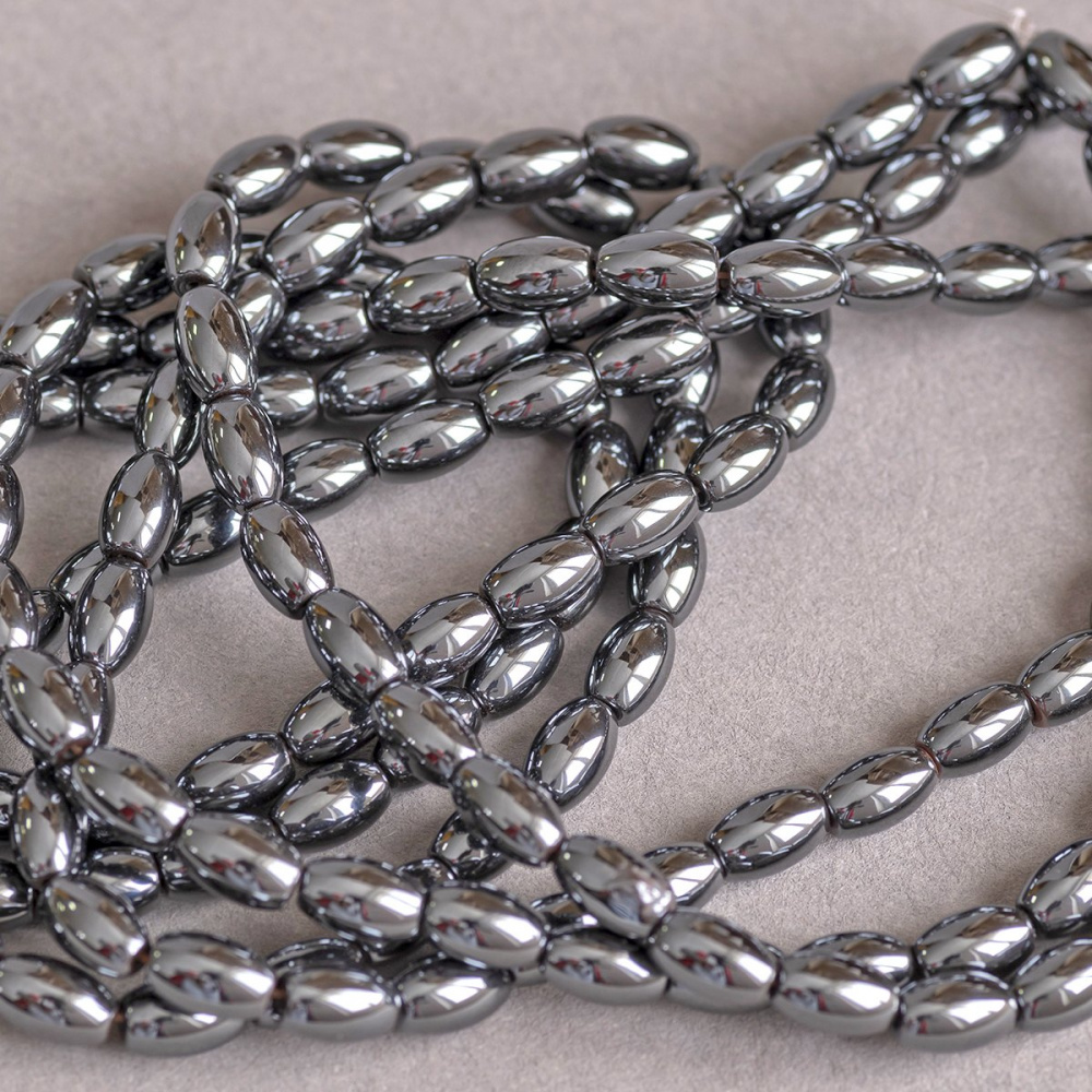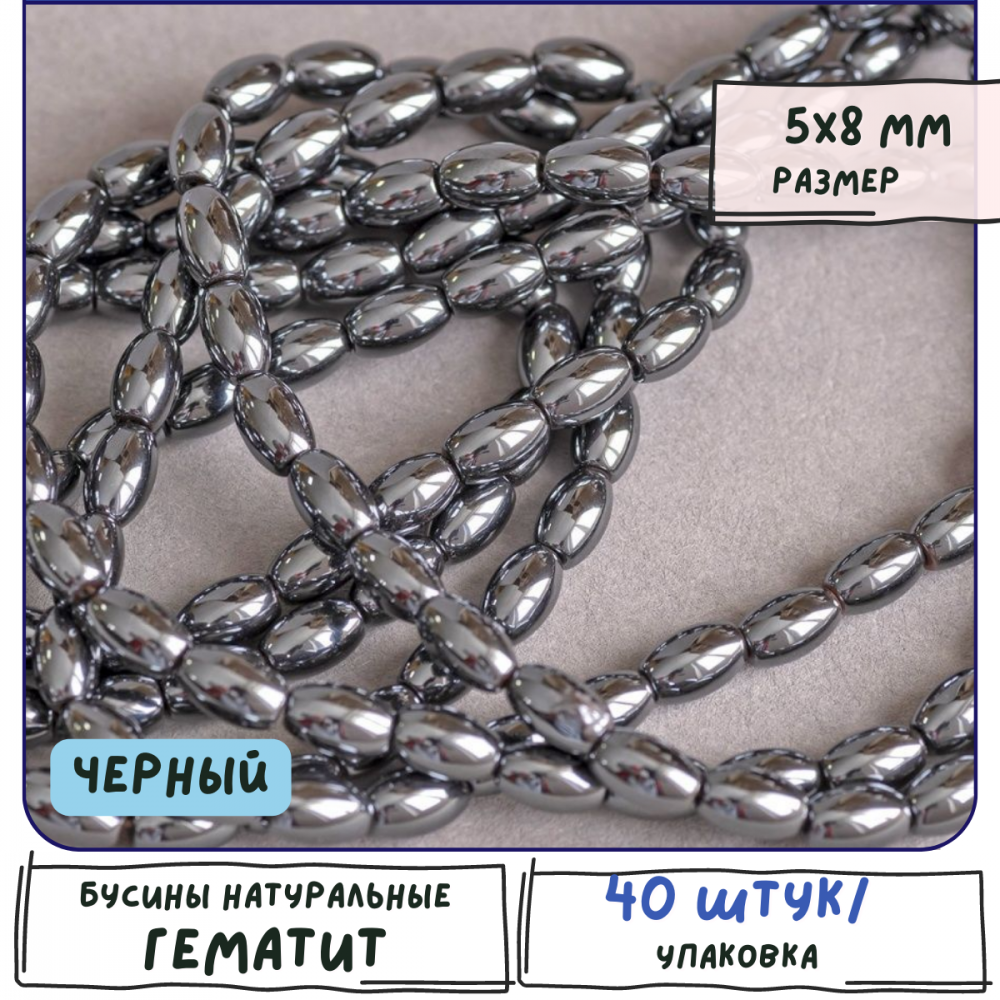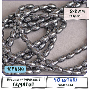 Бусина гематит немагнитный, рис, цвет черный, 5х8 мм (стренд 20 шт.)