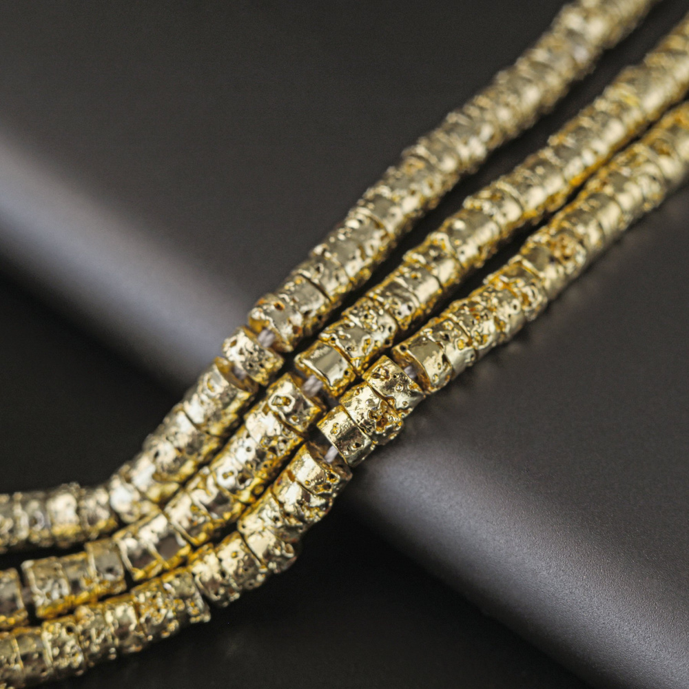 Бусина формы плоского диска изготовлена из синтетического немагнитного гематита, неровная поверхность. Использование мелких ронделей придает дорогой вид бусам и браслетам из натурального камня.