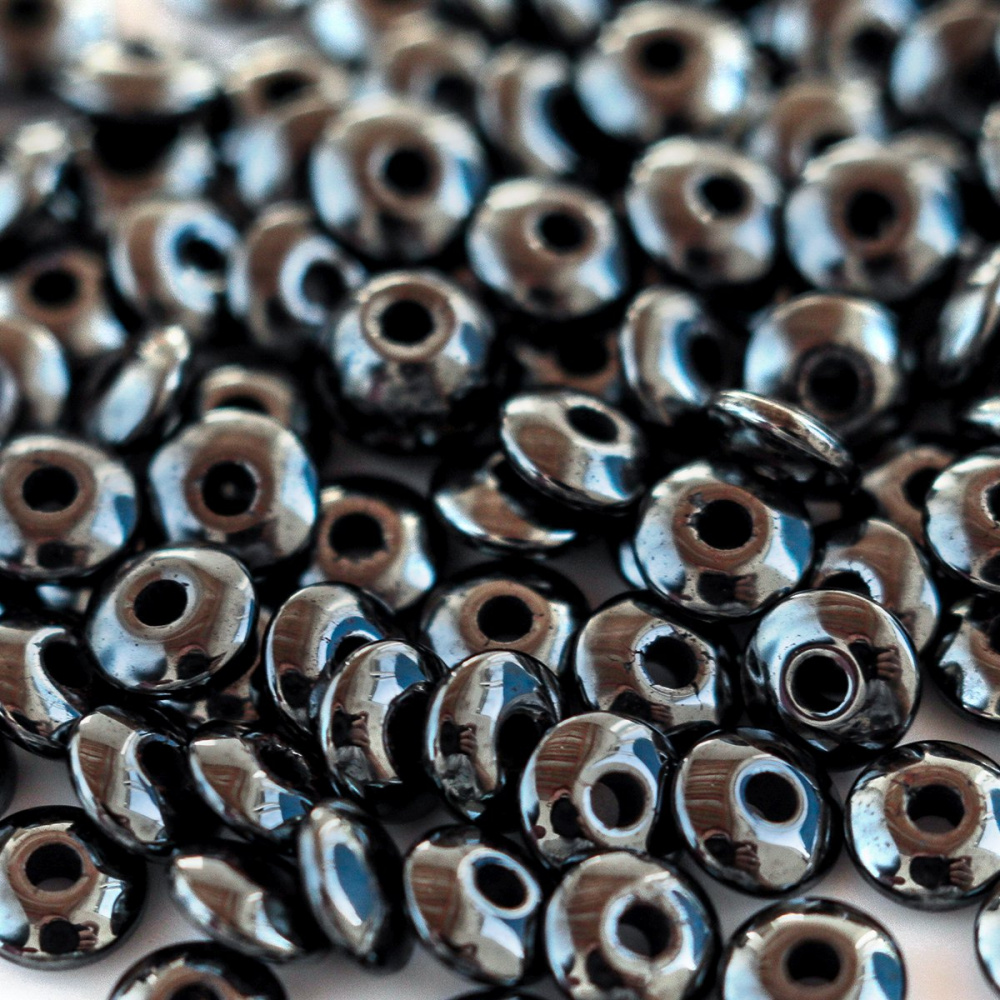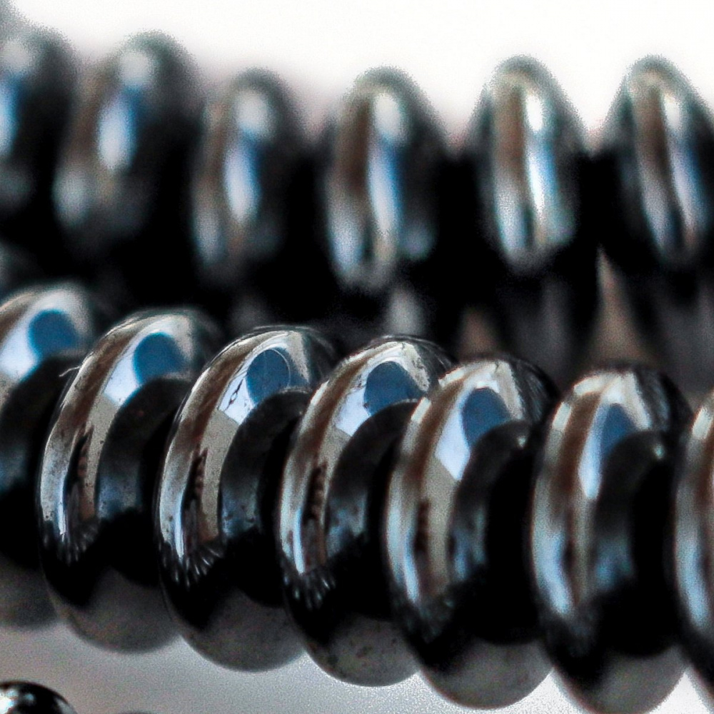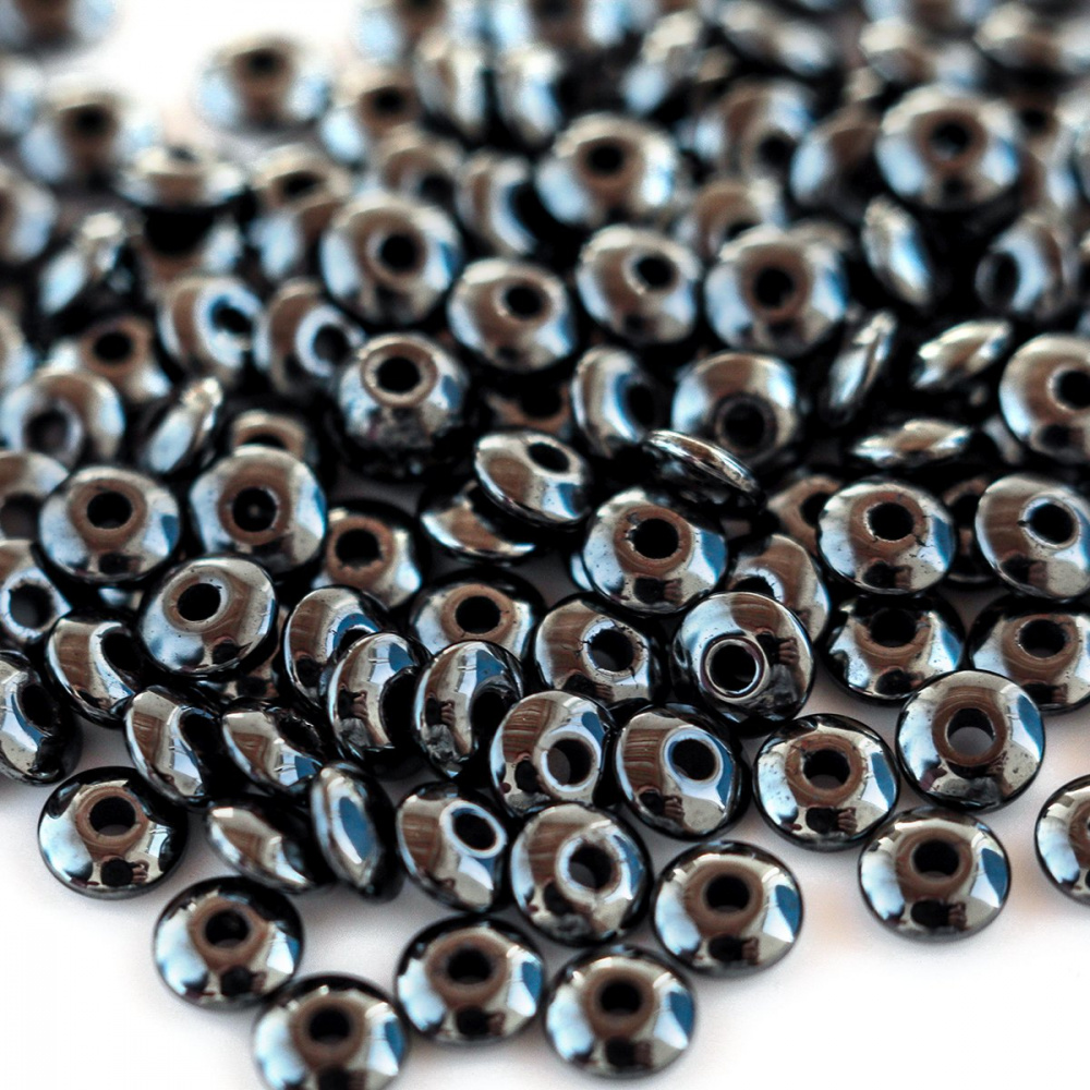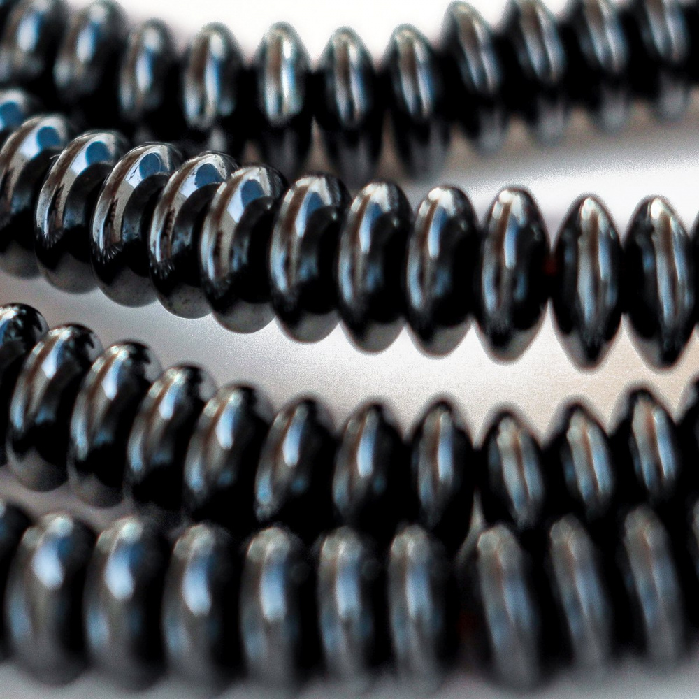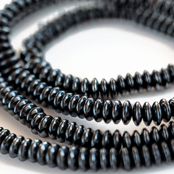 Бусина формы рондель изготовлена из синтетического немагнитного гематита. Использование мелких ронделей придает дорогой вид бусам и браслетам из натурального камня.