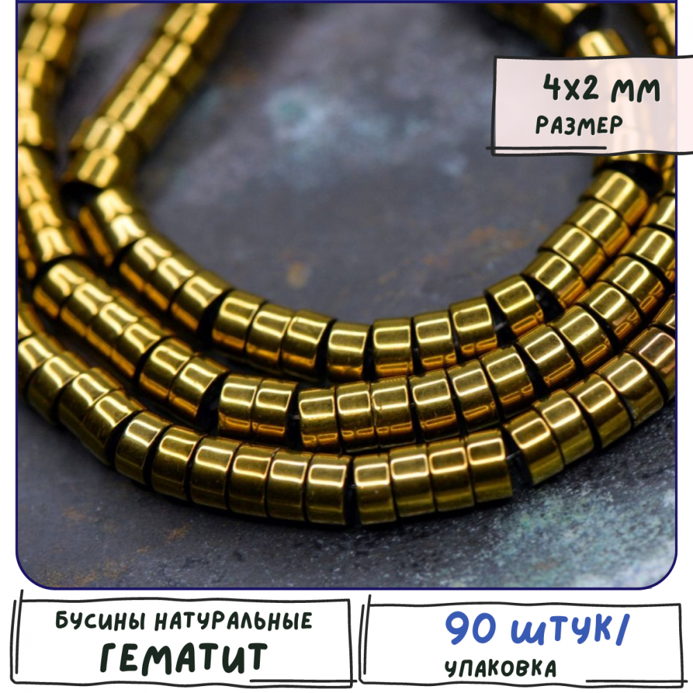 Бусина гематит синт., металлизир., рондель, цвет золото, 4x2 мм (стренд 30 шт.)