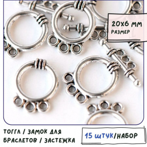 Тоггл "Раунд", цвет античное серебро, 15х2 мм