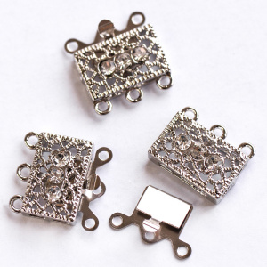 Замок для украшений "Триоле", стразы, цвет платина, 18x17x7 мм
