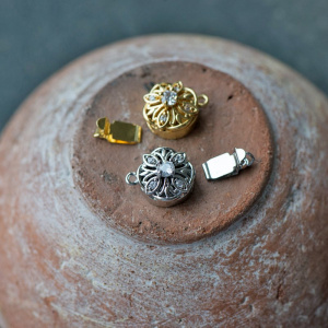 Застежка магнитная "Гранат", стразы, цвет античная бронза, 19x12.5 мм