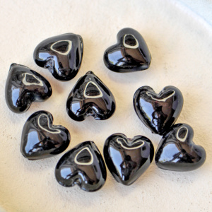 Бусина, стекло с фольгой, "Сердечко", цвет черный, 15х15х10 мм