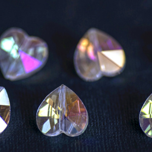 Бусина, стекло, "Сердце", граненая, цвет прозрачный радужный, 14х14х8 мм