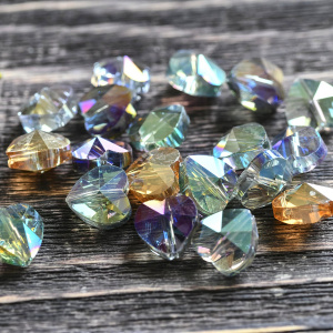 Бусина, стекло, "Сердце", граненая, цветовой микс радужный, 10x10x7 мм