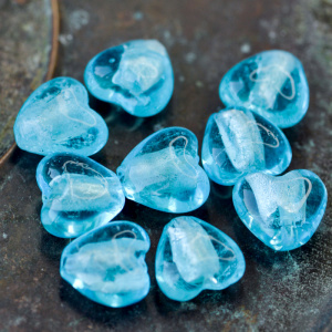 Бусина, стекло с фольгой, "Сердечко", цвет яркий голубой, 15х15х10 мм
