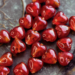 Бусина "Сердечко", стекло, цвет красный радужный, 10x10x6.5 мм