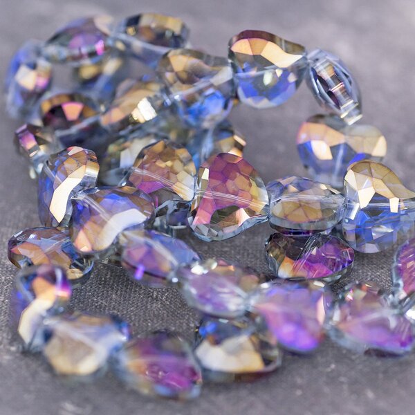 Бусина, стекло, "Сердце", граненая, цвет сиреневый радужный, 16.5x19.5x9 мм