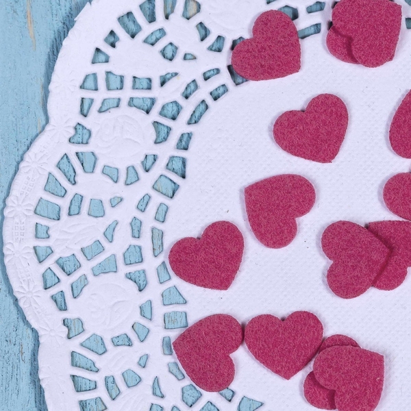 Набор сердечек из фетра для творчества. В наборе 20 сердечек в цвете фуксия. Размер сердечка: 15 мм.