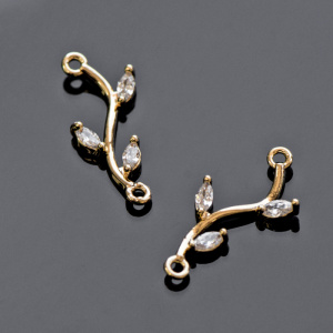 Коннектор "Веточка", цирконий, позолота, 22x9x3 мм