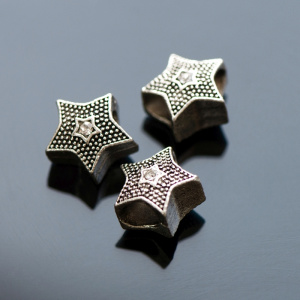 ЕС бусина металл "Стар", стразы, цвет античное серебро/прозрачный, 10.5x10.5x7 мм