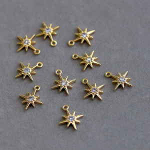 Подвеска металл "Стар", позолота/циркон, 10.5x8.5x2 мм
