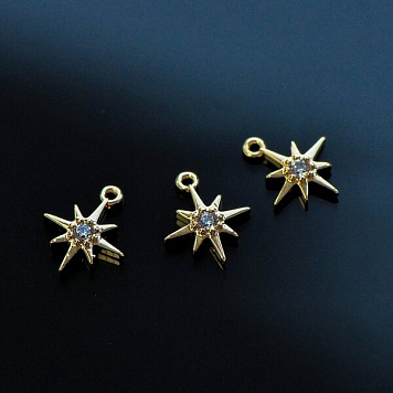 Подвеска в форме звездочки, выполнена из латуни. Покрытие Real 18K Gold Plated.