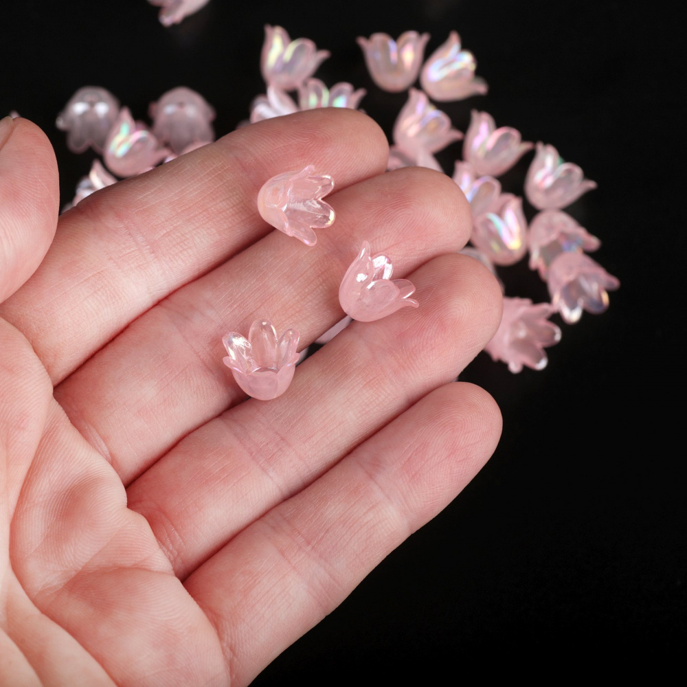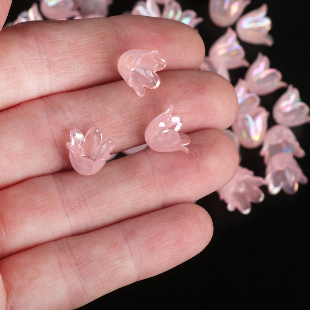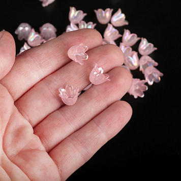 Бусина, акрил "Колокольчик", цвет светло-розовый перламутровый, 11.5x10.5x8.5 мм
