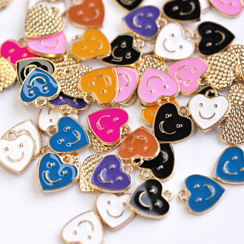 Подвеска в виде сердечка со смайлом, выполнена из металлического сплава, покрыта цветной эмалью.