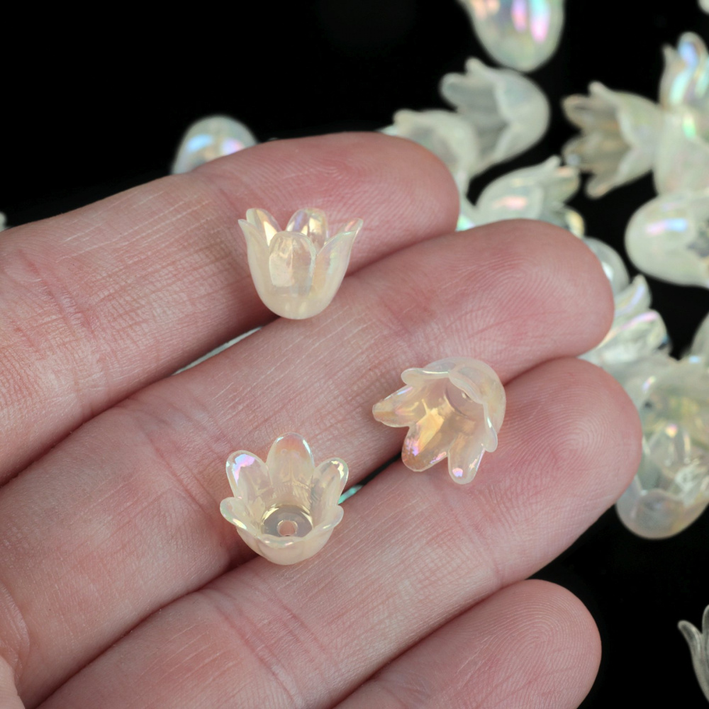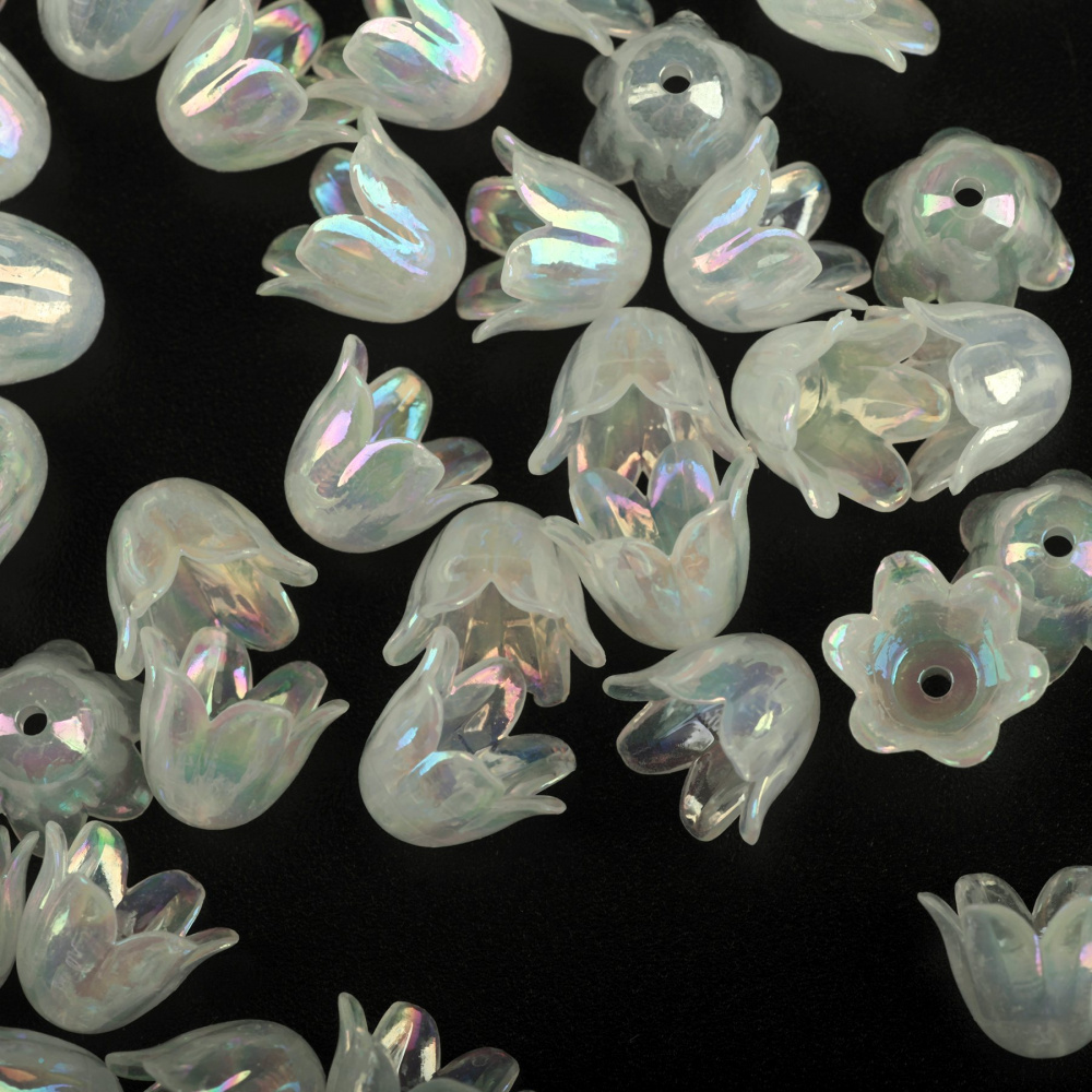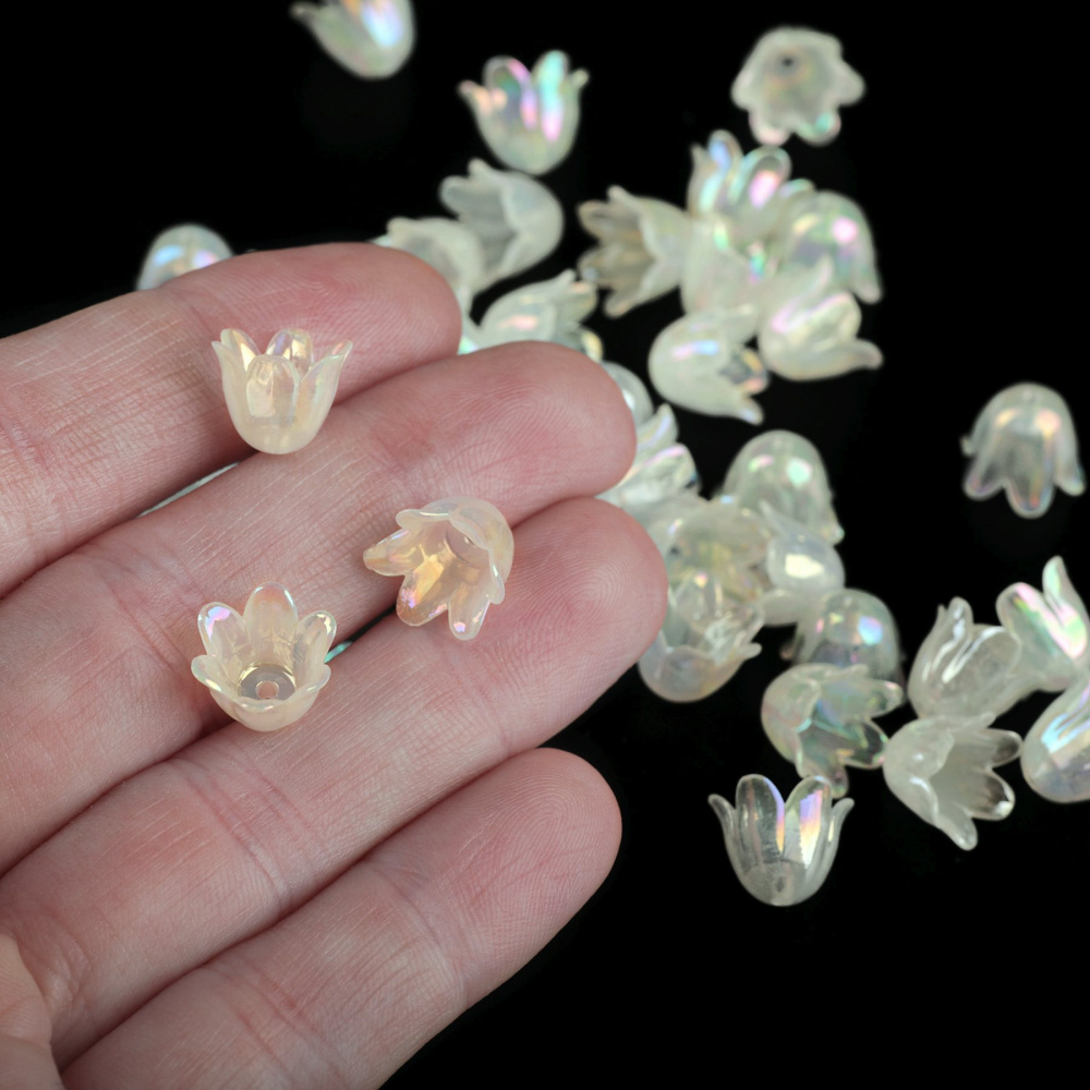 Бусина, акрил "Колокольчик", цвет белый перламутровый, 11.5x10.5x8.5 мм