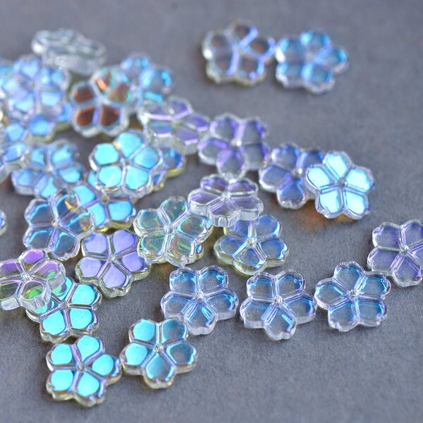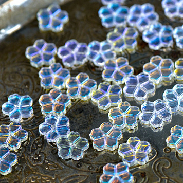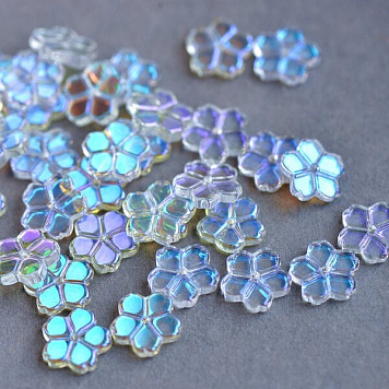 Бусина "Гардения", стекло, цвет прозрачный АВ, 11.5x12x2.5 мм