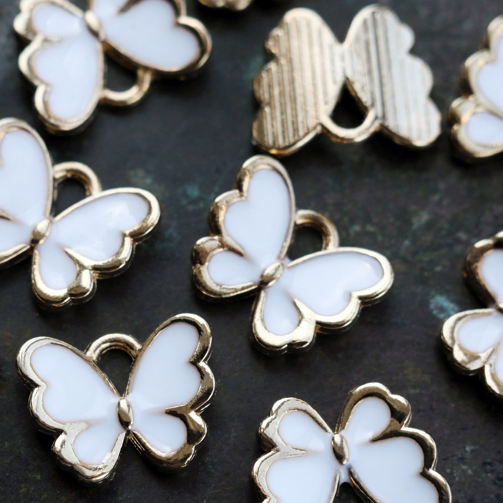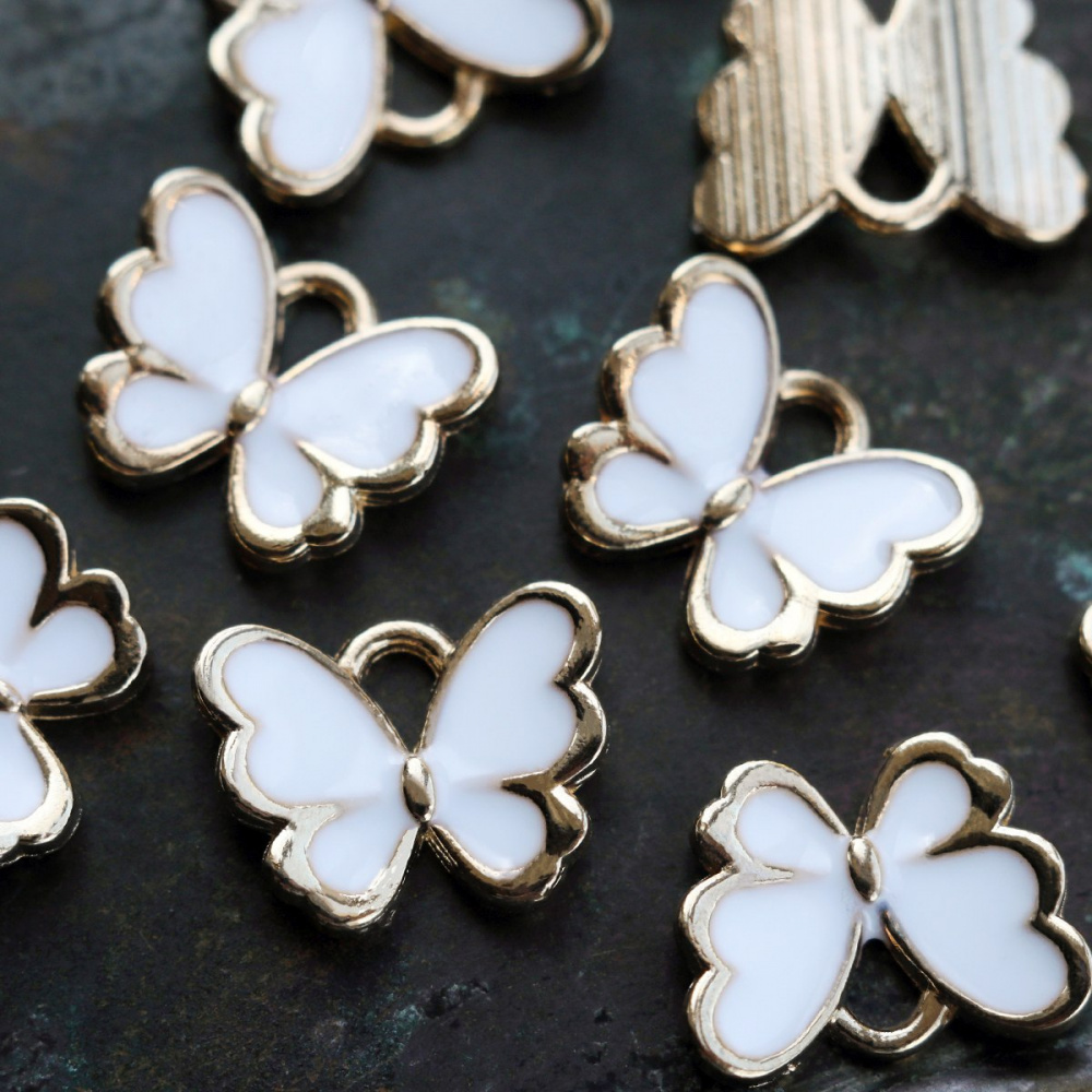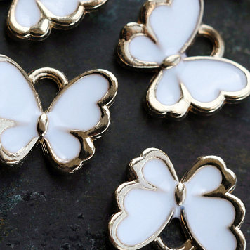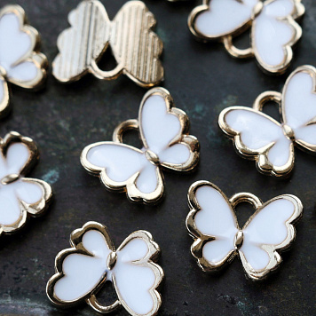 Подвеска металлическая "Бабочка", эмаль, цвет белый, 10.5x13x3 мм
