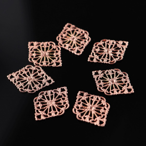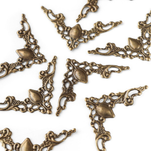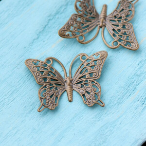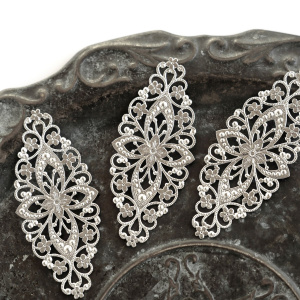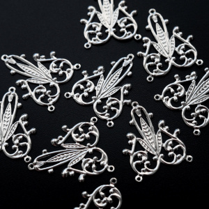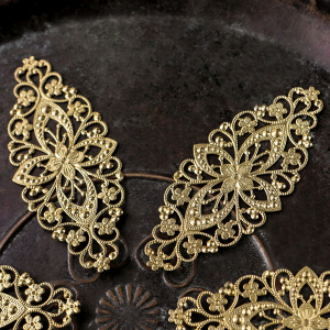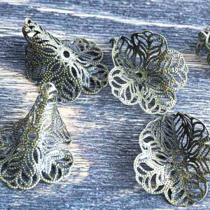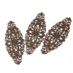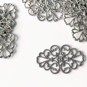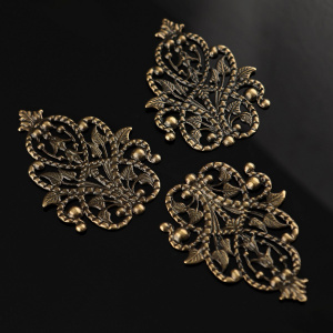 Чаще всего филигрань выполнена в бронзе, цветом и фактурой подчеркивая старинный стиль изделия, но в нашем магазинчике можно купить филигранные коннекторы медного и серебристого цветов.