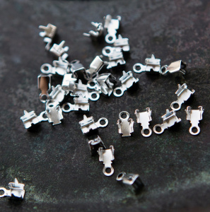 Концевики (Tip Crimp End) – надеваются на концы лент, шнуров, лески. Концевик разжимается плоскогубцами, затем в него вкладывается кончик шнурка, и деталь снова зажимается. Теперь неопрятные концы не только скрыты – они не растреплются. Для лент следует выбрать зажимы для ленты и корда.