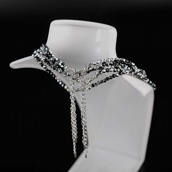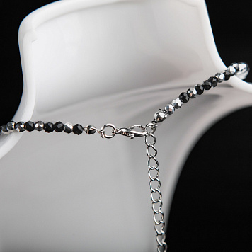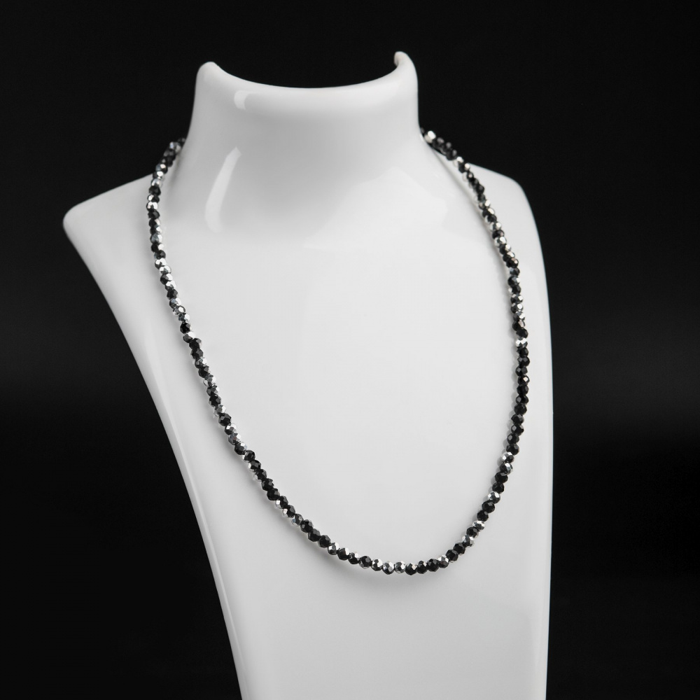 Основа для ожерелья с замком, бусины фацет, чёрный микс, 410х3 мм