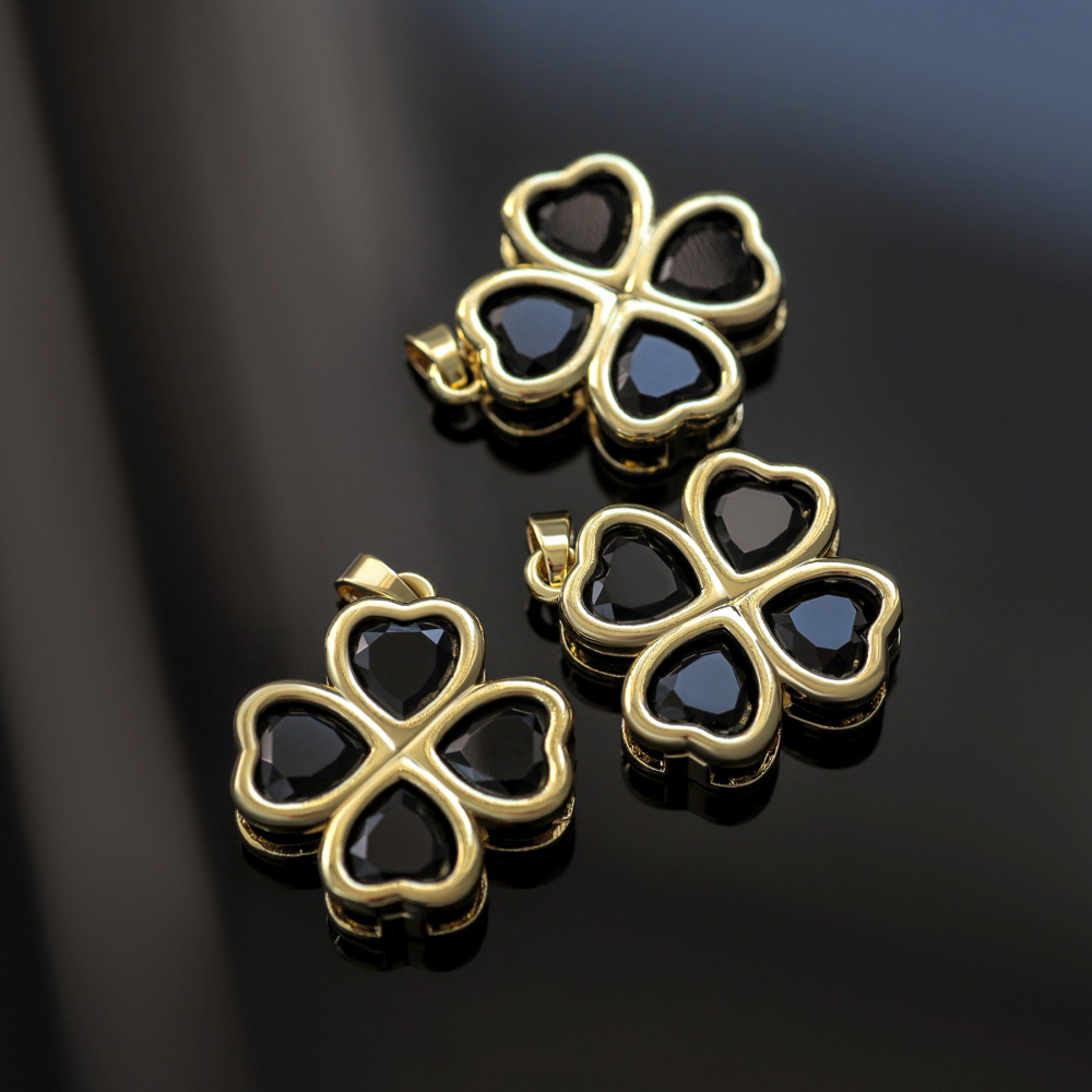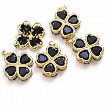 Подвеска металл "Клевер", черный/позолота, 24x21.5x5.5 мм