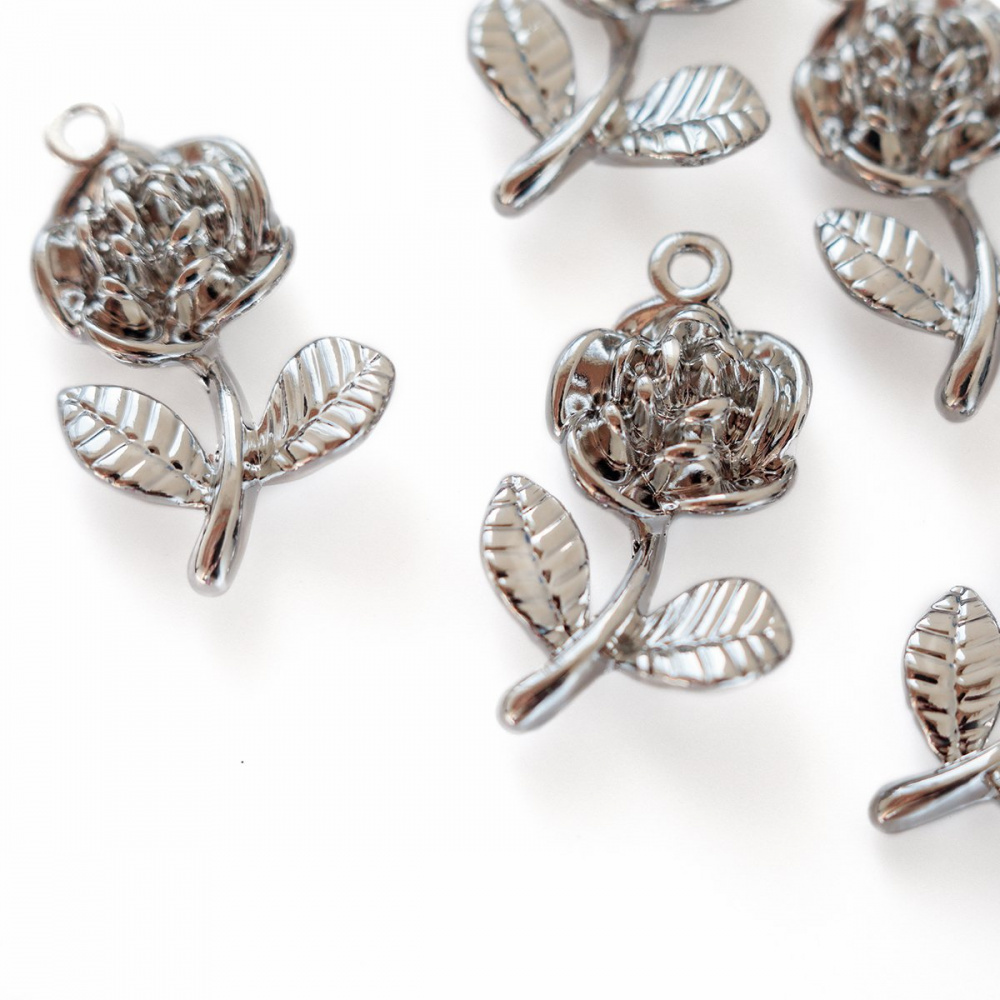 Подвеска металлическая "Розочка", цвет платина, 21x15 мм