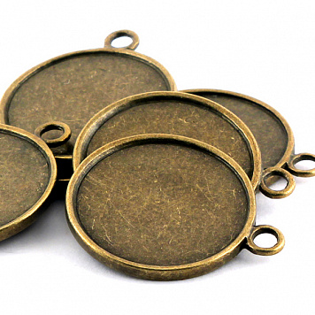 Сеттинг (основа под кабошон) круглой формы, изготовлен из сплава, цвет античная бронза.