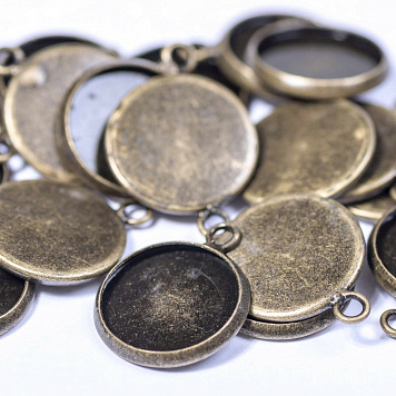 Сеттинг (основа под кабошон) круглой формы, изготовлен из латуни, цвет античная бронза.