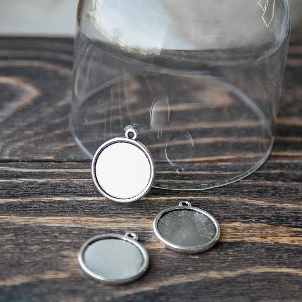 Сеттинг (основа для кабошона) круглой формы, изготовлен из латуни, цвет античное серебро.