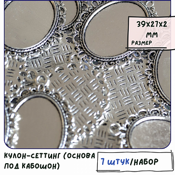 Сеттинг овальный "Ажур", цвет античное серебро, 39х29х2 мм