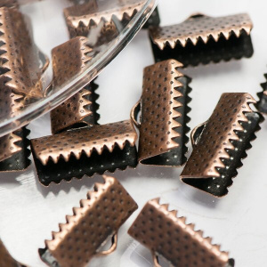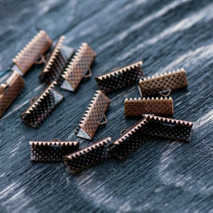 Зажимы-концевики используются, чтобы закрепить конец ленты, шнура, ювелирного тросика. Зажимы как правило имеют петельку, к которой при помощи колечка крепится застежка.