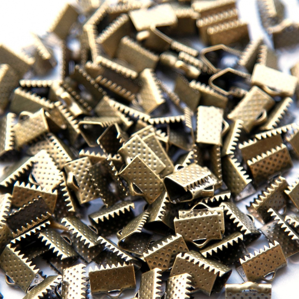 Зажим-концевик для ленты, изготовлен из металла, цвет - античная бронза.
