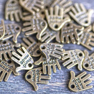Подвеска акриловая "Hand made", цвет античная бронза, 12.5x12.5x2 мм