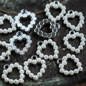 Подвеска акрил "Жемчужное сердце", цвет белый/платина, 20.5x17x4.5 мм