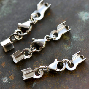 Комплект застежка-лобстер с зажимами для шнура, 304 Stainless Steel, 27 мм