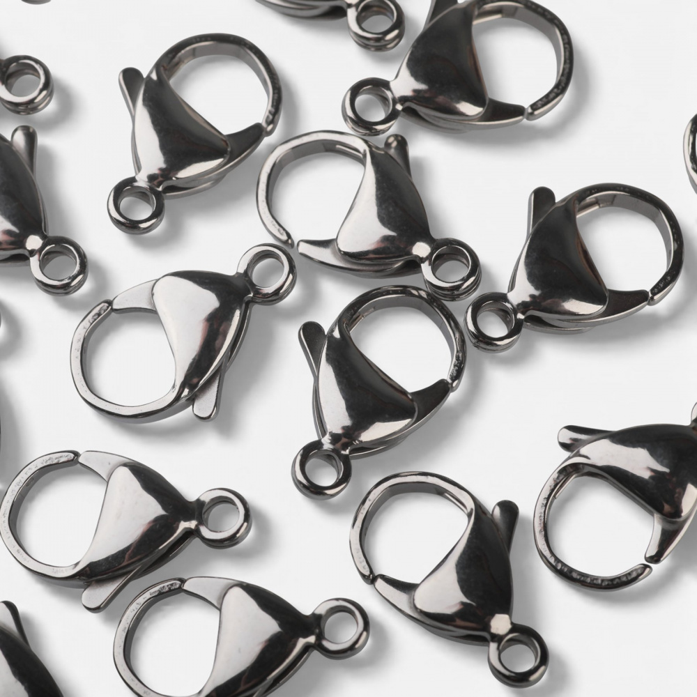Замочек-лобстер изготовлен из нержавеющей стали 304 Stainless Steel, цвет стальной.