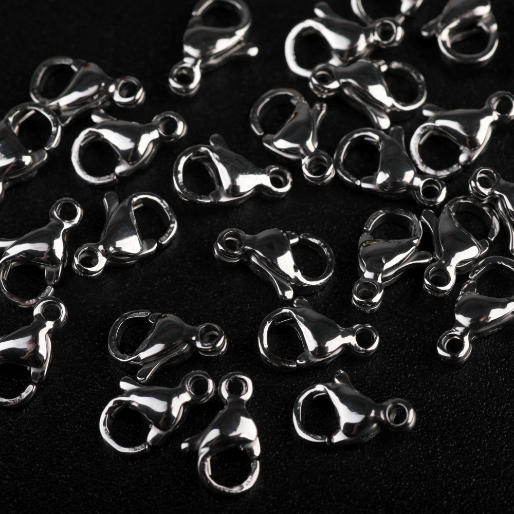 Замочек-лобстер изготовлен из нержавеющей стали 304 Stainless Steel, цвет стальной.