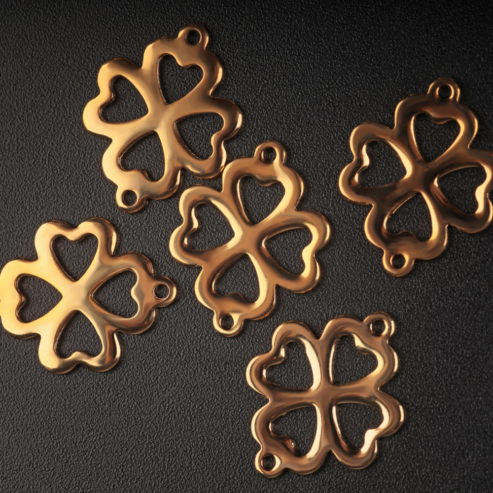Коннектор "Клевер", 201 Stainless Steel, цвет золото, 21.5x16.5x1 мм